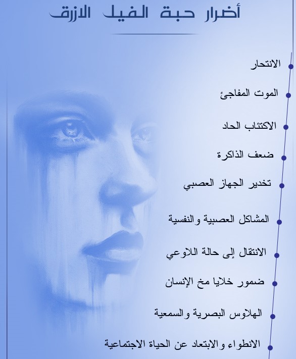 تظهر أضرار حبة الفيل الأزرق على المدى القصير والبعيد وتؤثر على الحالة النفسية والجسدية للمتعاطي وتشمل:
